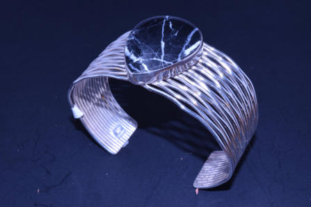 Native American Sterling Silver Bracelet Rainwater Design with White LightningMurphy Platero$420.00